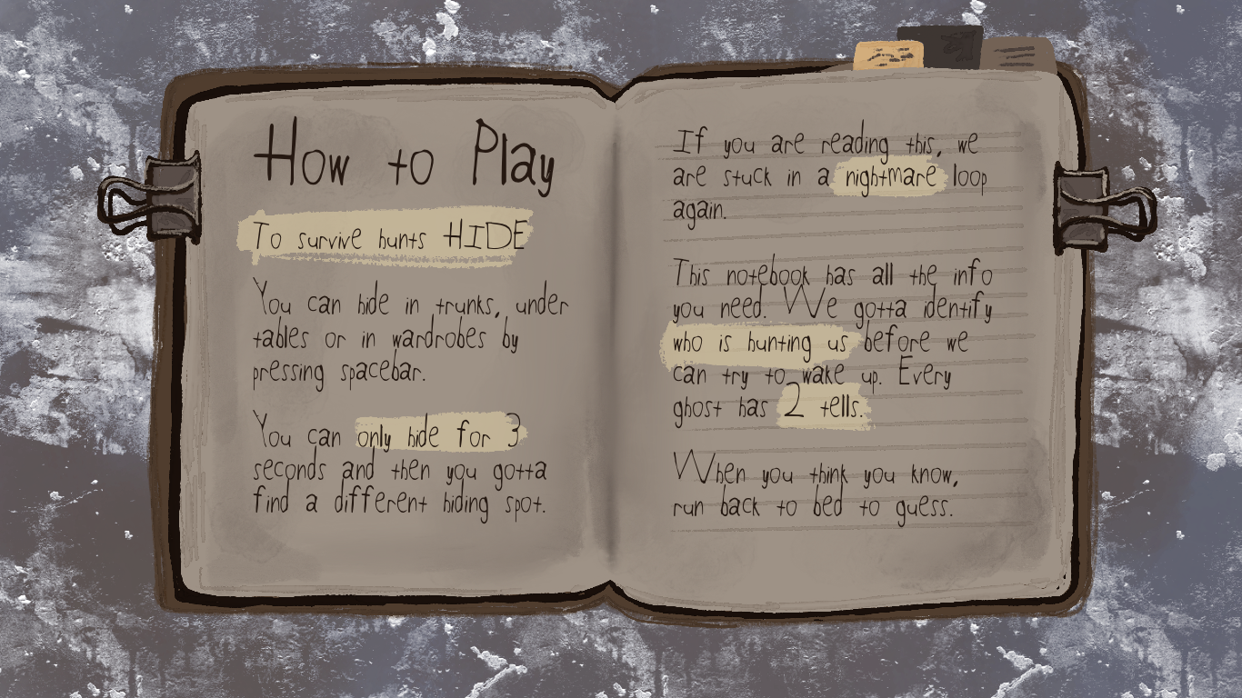 Press escape or enter to open up your DREAM JOURNAL - here you can find clues to identify the ghosts!